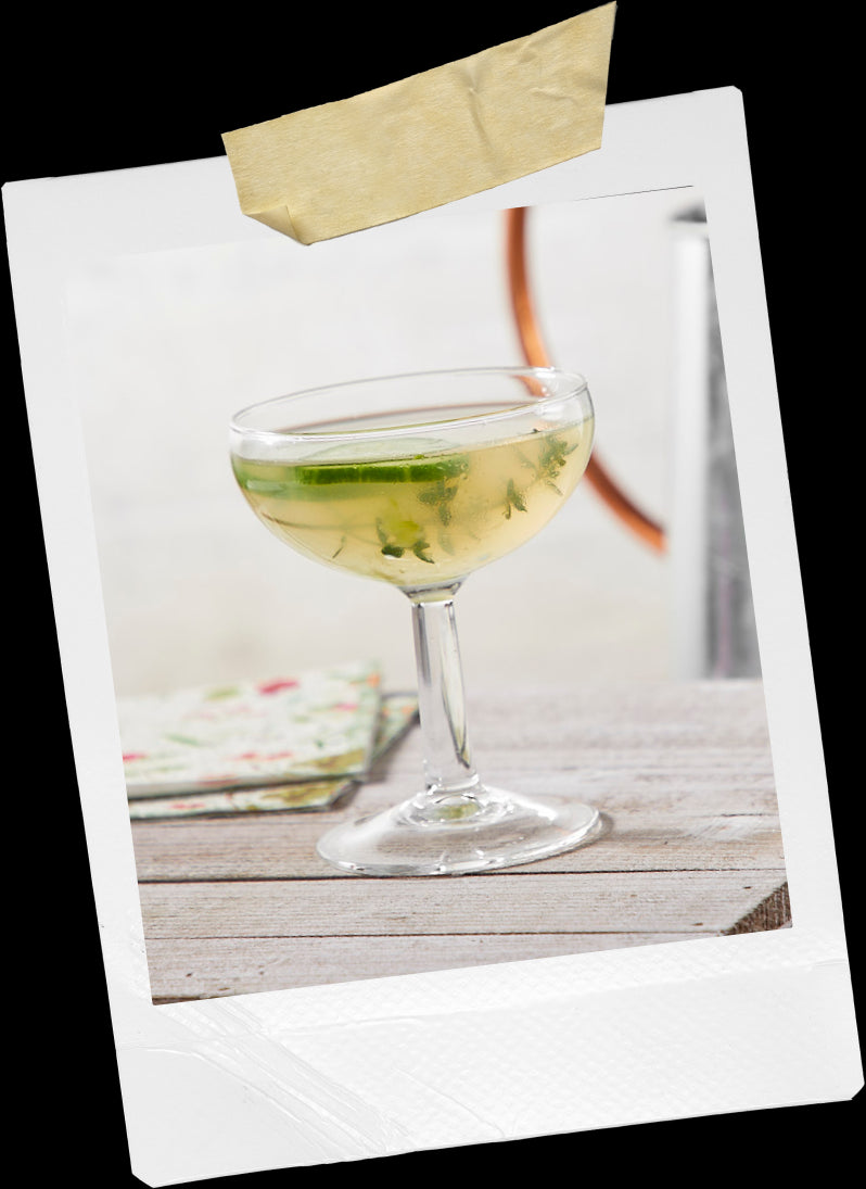 Herbaceous gin and chartreuse create a complex, sweet base for this gimlet. The addition of zesty lime, delicately crisp cucumber and cool thyme take this recipe to new heights.